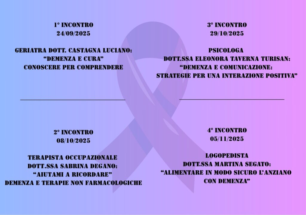 Presso il Centro Servizi “Ida Zuzzi” dalle ore 18:00 alle ore 19:30 đź“…mercoledì 24.09.2025 đź“…mercoledì 08 ottobre 2025 đź“…mercoledì 29 ottobre 2025 đź“…mercoledì 05 novembre